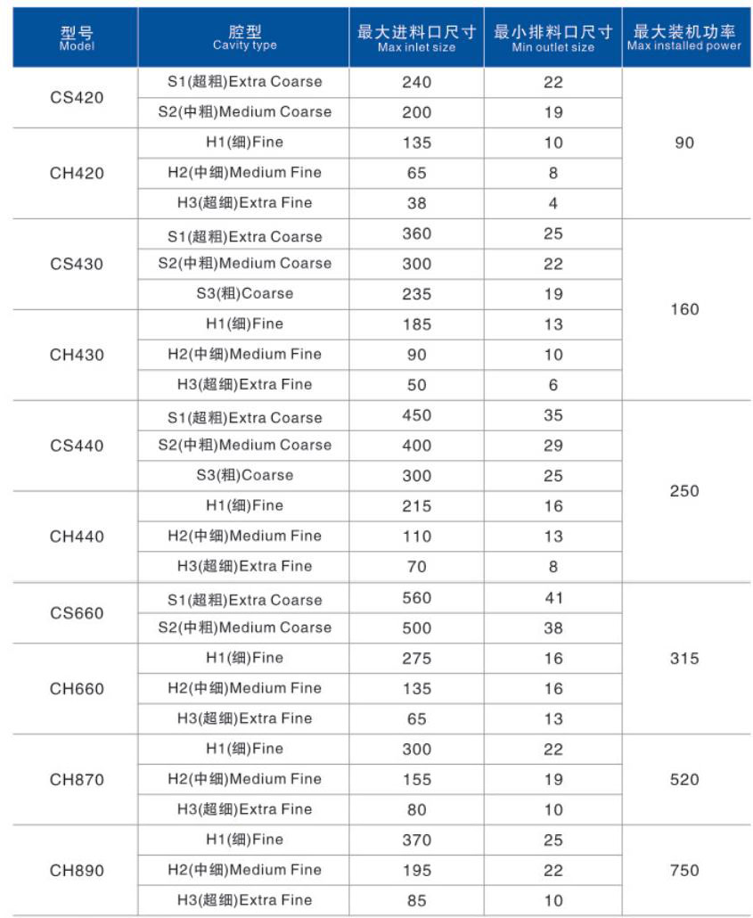 山特维克版本CS系列单缸液压圆锥破碎机是根据圆锥破碎机领域的技术进展设计的,共有三个规格,每个规格有粗、中、细三种腔形。
